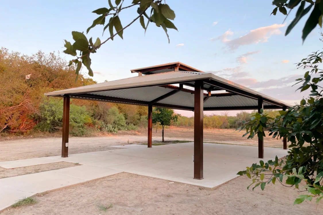 The Multipurpose Field East Pavilion was completed in 2023 and is the nearest pavilion to the Dog Park and the Salado Creek Greenway Trailhead.